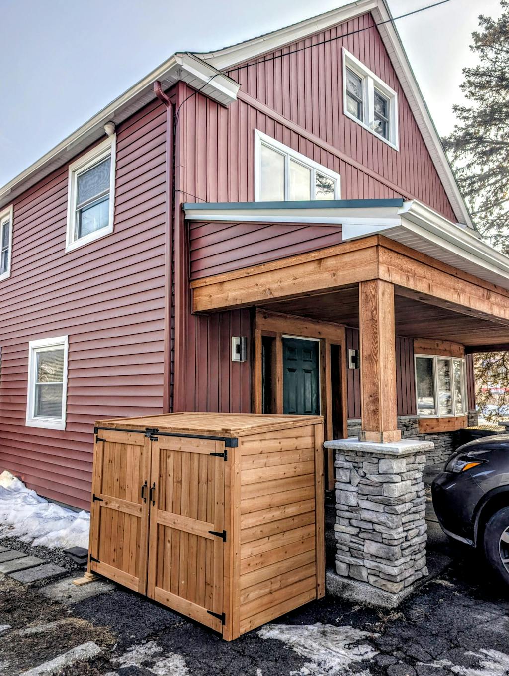 It is a beautiful shed that my son was able to assemble because the instructions were clear and correct. The smell of the cedar is wonderful and the wood blends in with the surroundings. For a small shed, it holds all my garden tools and much more. Love it!